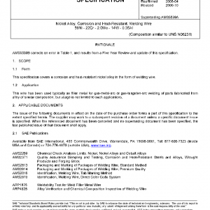This specification covers a corrosion and heat-resistant nickel alloy in the form of welding wire.