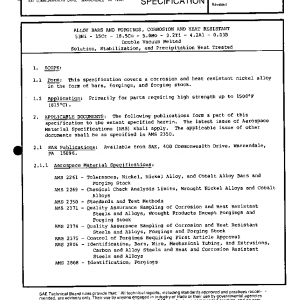 This specification covers a corrosion and heat resistant nickel alloy in the form of bars, forgings, and forging stock.