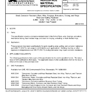 This specification covers a corrosion-resistant steel in the form of bars, wire, forgings, extrusions, mechanical tubing, flash welded rings, and stock for forging, extruding, or flash welded rings.