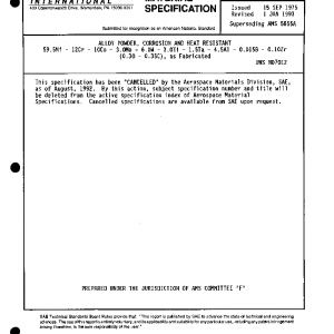This specification has been ‘CANCELLED’ by the Aerospace Materials Division, SAE, as of August, 1992.