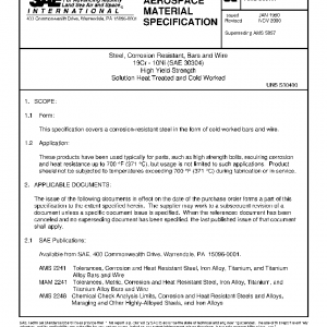 Steel, Corrosion Resistant, Bars and Wire 19Cr – 10Ni (SAE 30304) High Yield Strength Solution Heat Treated and Cold Worked