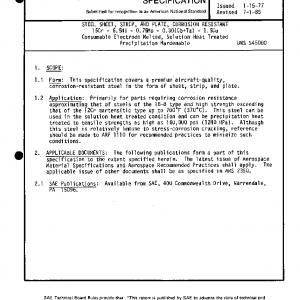This specification covers a premium aircraft-quality, corrosion-resistant steel in the form of sheet, strip, and plate.