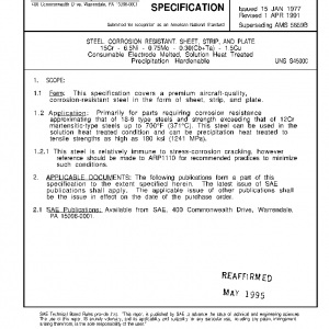 This specification covers a premium aircraft-quality, corrosion-resistant steel in the form of sheet, strip, and plate.