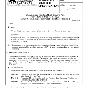 Steel, Corrosion Resistant, Sheet, Strip, and Plate 12Cr – 8.5Ni – 0.30Cb – 1.1Ti – 2.0Cu Multiple Melted, Solution Heat Treated, Precipitation Hardenable