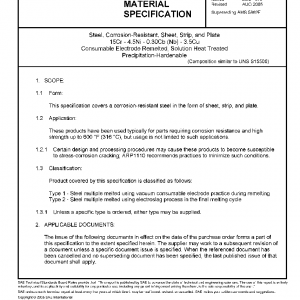 Steel, Corrosion-Resistant, Sheet, Strip, and Plate 15Cr – 4.5Ni – 0.30Cb (Nb) – 3.5Cu Consumable Electrode Remelted, Solution Heat Treated Precipitation-Hardenable