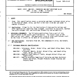 This specification covers a corrosion and heat resistant nickel alloy in the form of sheet, strip, and foil 0.100 inch (2.54 mm) and under in nominal thickness.
