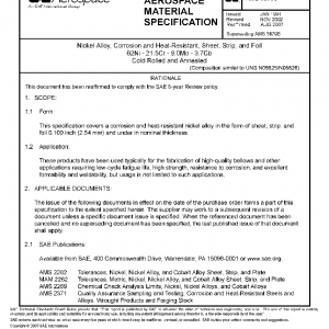 This specification covers a corrosion and heat-resistant nickel alloy in the form of sheet, strip, and foil 0.100 inch (2.54 mm) and under in nominal thickness.
