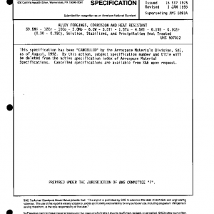 This specification has been “CANCELLED” by the Aerospace Materials Division, SAE, as of August, 1992.