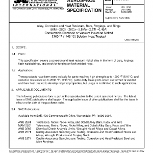 This specification covers a corrosion and heat resistant nickel alloy in the form of bars, forgings, flash welded rings, and stock for forging or flash welded rings.