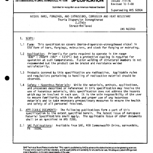 This specification covers thoria-dispersion-strengthened nickel in the form of bars, forgings, extrusions, and stock for forging or extruding.