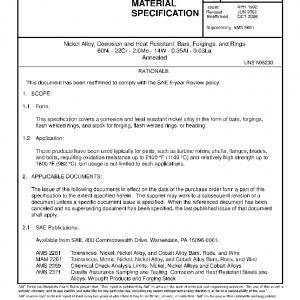 This specification covers a corrosion and heat resistant nickel alloy in the form of bars, forgings, flash welded rings, and stock for forging, flash welded rings, or heading.