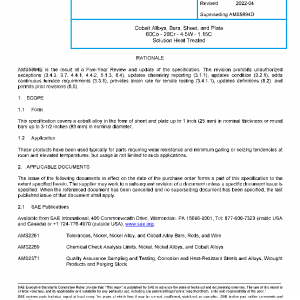 This specification covers a cobalt alloy in the form of sheet and plate up to 1 inch (25 mm) in nominal thickness or round bars up to 3-1/2 inches (89 mm) in nominal diameter.