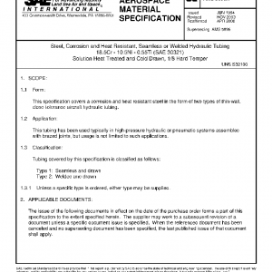 Steel, Corrosion and Heat Resistant, Seamless or Welded Hydraulic Tubing 18.5Cr – 10.5Ni – 0.55Ti (SAE 30321) Solution Heat Treated and Cold Drawn, 1/8 Hard Temper