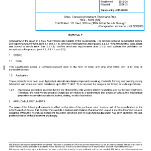 Steel, Corrosion-Resistant, Sheet and Strip 18Cr – 9.0Ni (302) Cold Rolled, 1/2 Hard, 150 ksi (1034 MPa) Tensile Strength