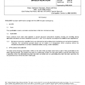 Steel, Corrosion-Resistant, Sheet and Strip 18Cr – 9.0Ni (SAE 30302) Cold Rolled, Full Hard, 185 ksi (1276 MPa) Tensile Strength