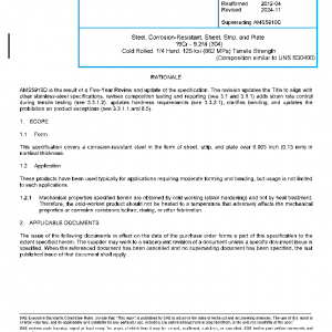 This specification covers a corrosion-resistant steel in the form of sheet, strip, and plate over 0.005 inch (0.13 mm) in nominal thickness.