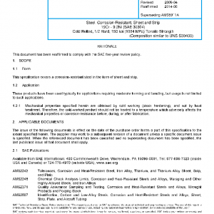 Steel, Corrosion-Resistant, Sheet and Strip 19Cr – 9.2Ni (SAE 30304) Cold Rolled, 1/2 Hard, 150 ksi (1034 MPa) Tensile Strength