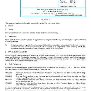 Steel, Corrosion-Resistant, Sheet and Strip 19Cr – 9.2Ni (SAE 30304) Cold Rolled, Full Hard, 185 ksi (1276 MPa) Tensile Strength