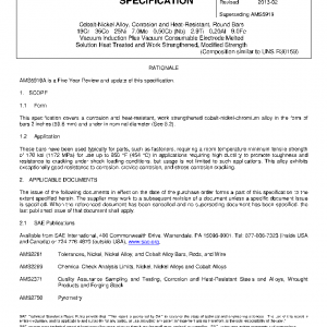 This specification covers a corrosion and heat-resistant, work strengthened cobalt-nickel-chromium alloy in the form of bars 2 inches (50.8 mm) and under in nominal diameter (See 8.2).