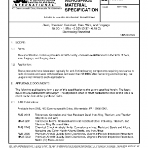 This specification covers a premium aircraft-quality, corrosion-resistant steel in the form of bars, wire, forgings, and forging stock.