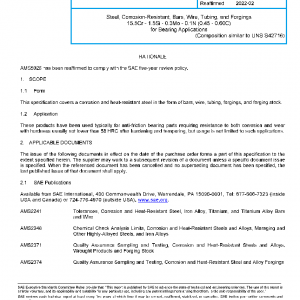This specification covers a corrosion and heat-resistant steel in the form of bars, wire, tubing, forgings, and forging stock.
