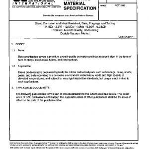 This specification covers a premium aircraft-quality corrosion and heat resistant steel in the form of bars, forgings, mechanical tubing, and forging stock.