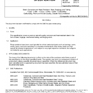 This specification covers a premium aircraft-quality corrosion and heat-resistant steel in the form of bars, forgings, mechanical tubing, and forging stock.