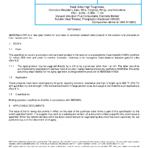 This specification covers a corrosion-resistant steel product in the solution and precipitation heat treated (H1000) condition 12 inches (305 mm) and under in nominal diameter, thickness or for hexagons, least distance between parallel sides (See 8.2).