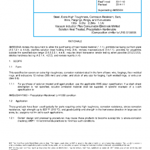 This specification covers an extra high toughness, corrosion-resistant steel in the form of bars, wire, forgings, flash welded rings, and extrusions 12 inches (305 mm) and under, and stock of any size for forging, flash welded rings, or extrusion (See 8.6).