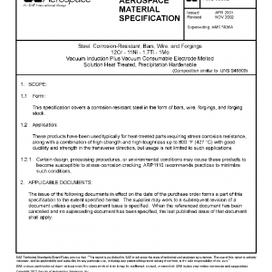 Steel, Corrosion-Resistant, Bars, Wire, and Forgings 12Cr – 11Ni – 1.7Ti – 1Mo Vacuum Induction Plus Vacuum Consumable Electrode Melted Solution Heat Treated, Precipitation Hardenable