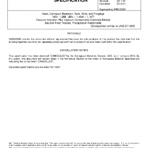 Steel, Corrosion-Resistant, Bars, Wire, and Forgings, 10Cr – 12Ni – 2Mo – 1.45Al – 1.15Ti, Vacuum Induction Plus Vacuum Consumable Electrode Melted, Solution Heat Treated, Precipitation Hardenable(Cancelled Jan 2013)