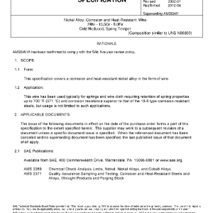This specification covers a corrosion and heat-resistant nickel alloy in the form of wire.