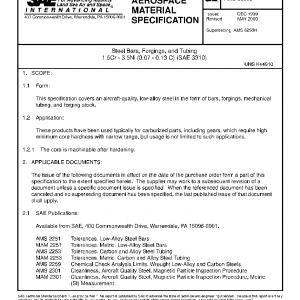 This specification covers an aircraft-quality, low-alloy steel in the form of bars, forgings, mechanical tubing, and forging stock.