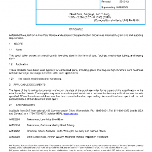This specification covers an aircraft-quality, low-alloy steel in the form of bars, forgings, mechanical tubing, and forging stock.