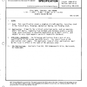 This specification covers a premium aircraft-quality, low-alloy steel in the form of bars, forgings, mechanical tubing, and forging stock.