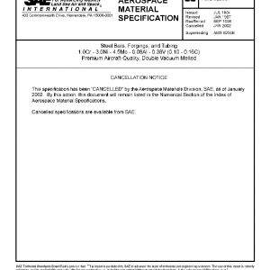 This specification has been declared “NONCURRENT” by the Aerospace Materials Division, SAE, as of September 1996. It is recommended, therefore, that this specification not be specified for new designs.Primarily for critical carburized parts, such as bearings, gears, and shafts, requiring high minimum core hardness with narrow range, superior resistance to elevated temperature up to 800 degrees F (425 degrees C), and subject to very rigid magnetic particle inspection standards.
