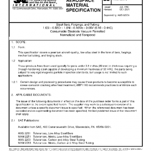 This specification covers a premium aircraft-quality, low-alloy steel in the form of bars, forgings, mechanical tubing, and forging stock.