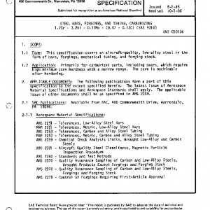 This specification covers an aircraft-quality, low-alloy steel in the form of bars, forgings, mechanical tubing, and forging stock.