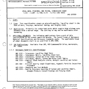 This specification covers an aircraft-quality, low-alloy steel in the form of bars, forgings, mechanical tubing, and forging stock.