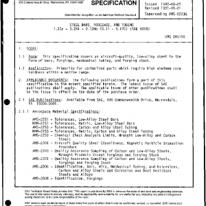 This specification covers an aircraft-quality, low-alloy steel in the form of bars, forgings, mechanical tubing, and forging stock.