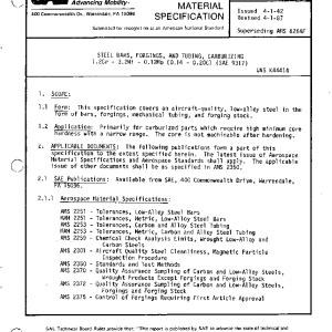 This specification covers an aircraft-quality, low-alloy steel in the form of bars, forgings, mechanical tubing, and forging stock.