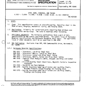 This specification covers an aircraft-quality, low-alloy steel in the form of bars, forgings, mechanical tubing, and forging stock.