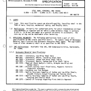 This specification covers an aircraft-quality, low-alloy steel in the form of bars, forgings, mechanical tubing, and forging stock.