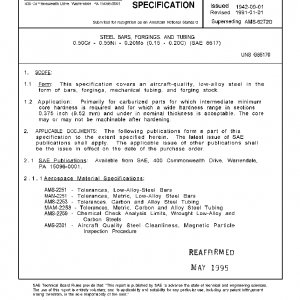 This specification covers an aircraft-quality, low-alloy steel in the form of bars, forgings, mechanical tubing, and forging stock.