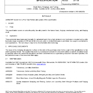 This specification covers an aircraft-quality, low-alloy steel in the form of bars, forgings, mechanical tubing, and forging stock.
