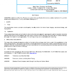 This specification covers a premium aircraft-quality, low-alloy steel in the form of bars, forgings, mechanical tubing, and forging stock.