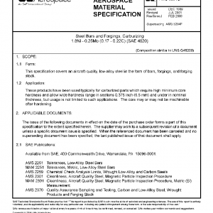 This specification covers an aircraft-quality, low-alloy steel in the form of bars, forgings, and forging stock.
