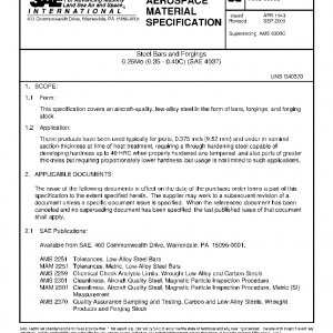 This specification covers an aircraft-quality, low-alloy steel in the form of bars, forgings, and forging stock.