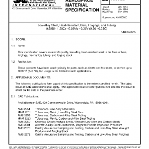 This specification covers an aircraft-quality, low-alloy, heat-resistant steel in the form of bars, forgings, mechanical tubing, and forging stock.