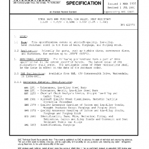 This specification covers an aircraft-quality, low-alloy, heat-resistant steel in the form of bars, forgings, and forging stock.